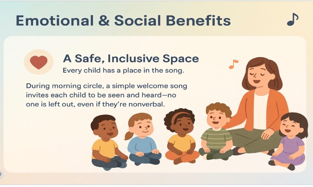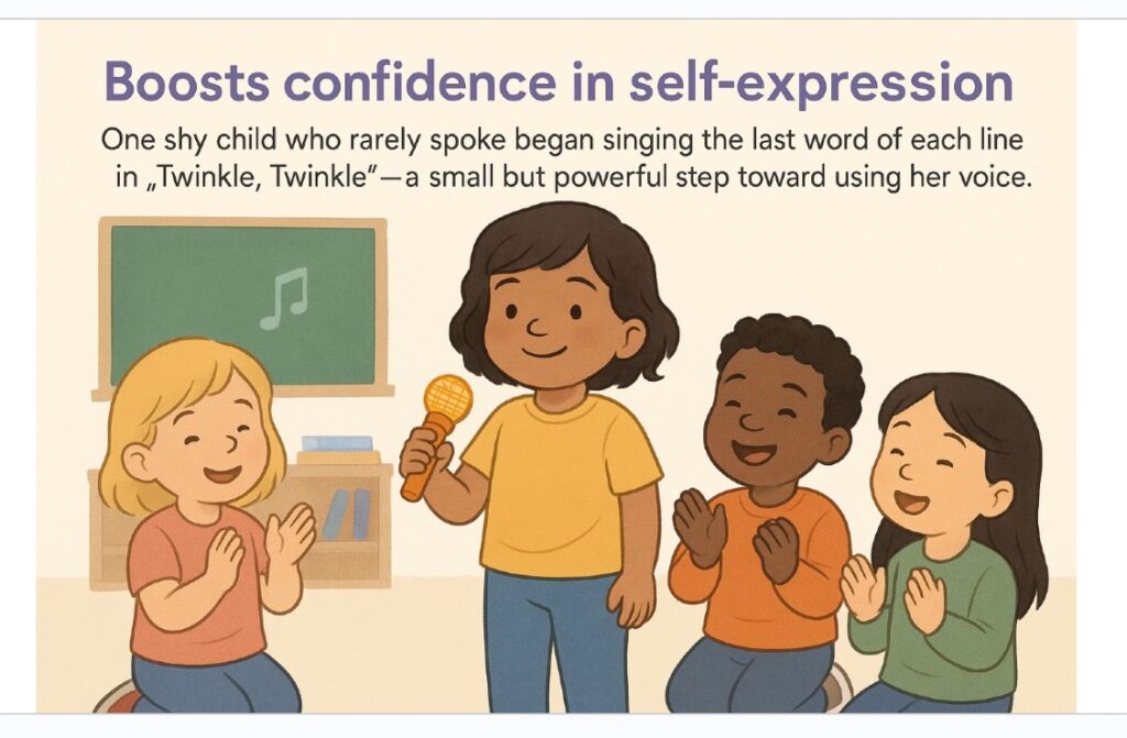- Some children may not respond to words alone—but they’ll respond to music. I’ve seen children light up when they hear a familiar tune, even if they’ve been quiet all day. A song can be the bridge that helps them begin to express themselves.