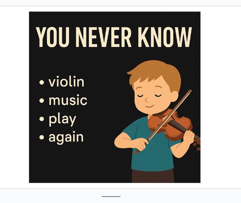 She said he especially lit up during violin solos—he would mimic the bowing motion with his arms, completely absorbed.