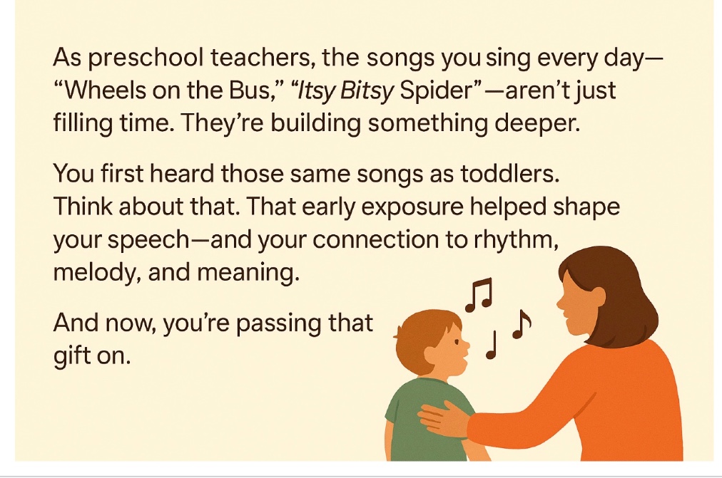 So when we sing songs like Twinkle, Twinkle, The Wheels on the Bus, or If You’re Happy and You Know It, we’re doing much more than entertaining. We’re building the core skills of language—sound by sound, word by word—with every beat and every verse.